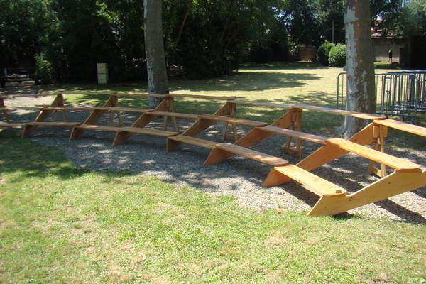 Nous possédons aussi d'autres gradins plus légers pouvant accueillir 120 personnes. `Nous pouvons rajouter des petits rangs en bas (devant) pour augmenter légerement le nombre de places. Nous avons 4 gradins de ce type pouvant accueillir 120 personnes par gradins